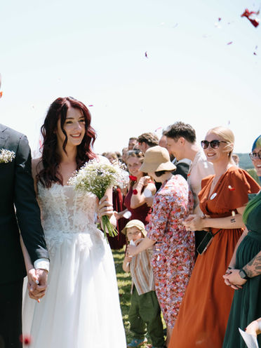 Byl to horký letní den, ale zároveň nádherně klidný. Obřad na louce, vítr ve vlasech, slunce nízko nad horizontem a momenty, které si člověk pamatuje ještě dlouho. Žádný stres, žádné zmatky – jen přítomnost, láska a pohoda.